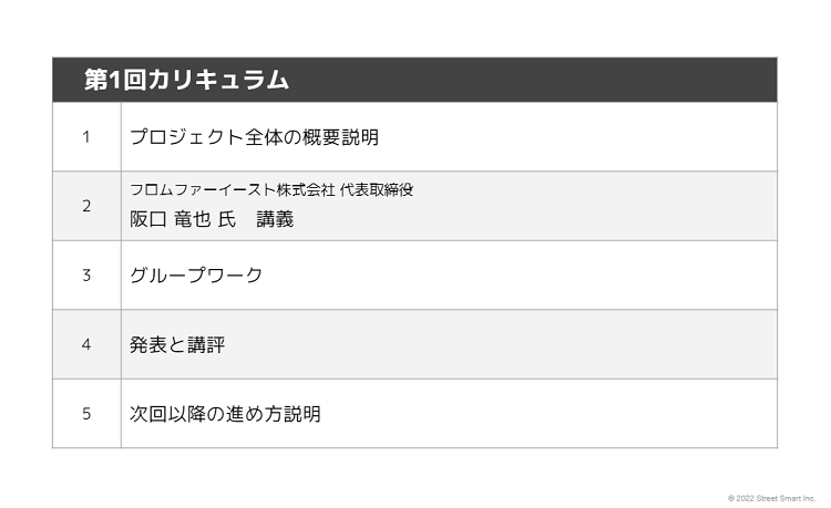 講師として、フロムファーイースト株式会社 代表取締役 阪口 竜也氏をお招きし、講演とグループワークを実施した第1回の様子をお伝えいたします。