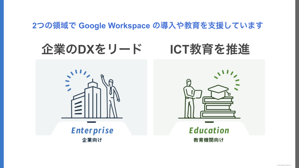 ストリートスマートでは未来を共に創る仲間を積極的に募集しています。、ICTの導入・活用支援を教育機関向けに行うEducation事業部、企業向けに行うEnterprise事業部、そのほかWebマーケティンググループやコーポレートデザイン部でも採用を行っています。ご興味のある方はぜひ採用ページをご覧ください。