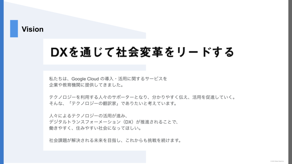 ストリートスマートの「ミッション」「ビジョン」「事業」