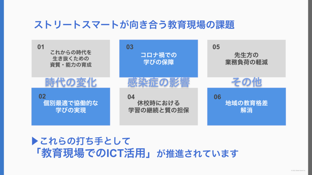 ・時代の変化や感染症の影響を要因に、教育現場は多くの問題を抱えている。その打ち手のひとつがICTの活用である。