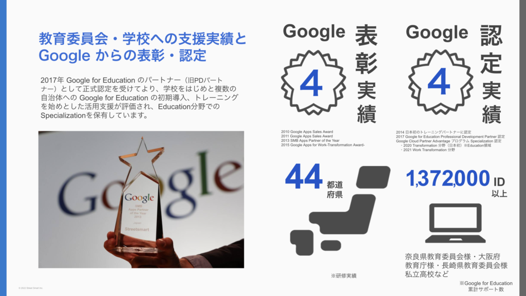 ・Google社 から多くの表彰・認定実績がある